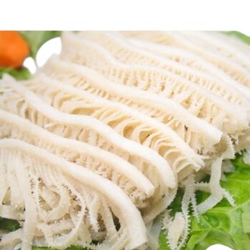 Beef omasum tripe. Tender and slightly chewy, with a rich, savory flavor, enhanced by its thin, strip-like shape. Cooking Time at SHP: Cooks very quickly, 2 -3 minutes at most.