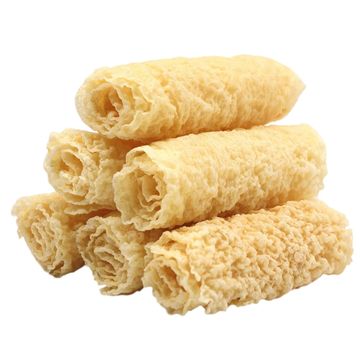Contains: Soybean. Juicy and slightly chewy, with a savory, umami flavor that absorbs broth well. Cooking time at SHP: Cooks very fast as it absorbs soup quickly, usually within 1 minute.