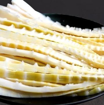 Gluten-free. Crisp and refreshing, bamboo shoots absorb broth flavors while adding a delicate crunch to your hot pot. Cooking time at SHP: at least 1 minute